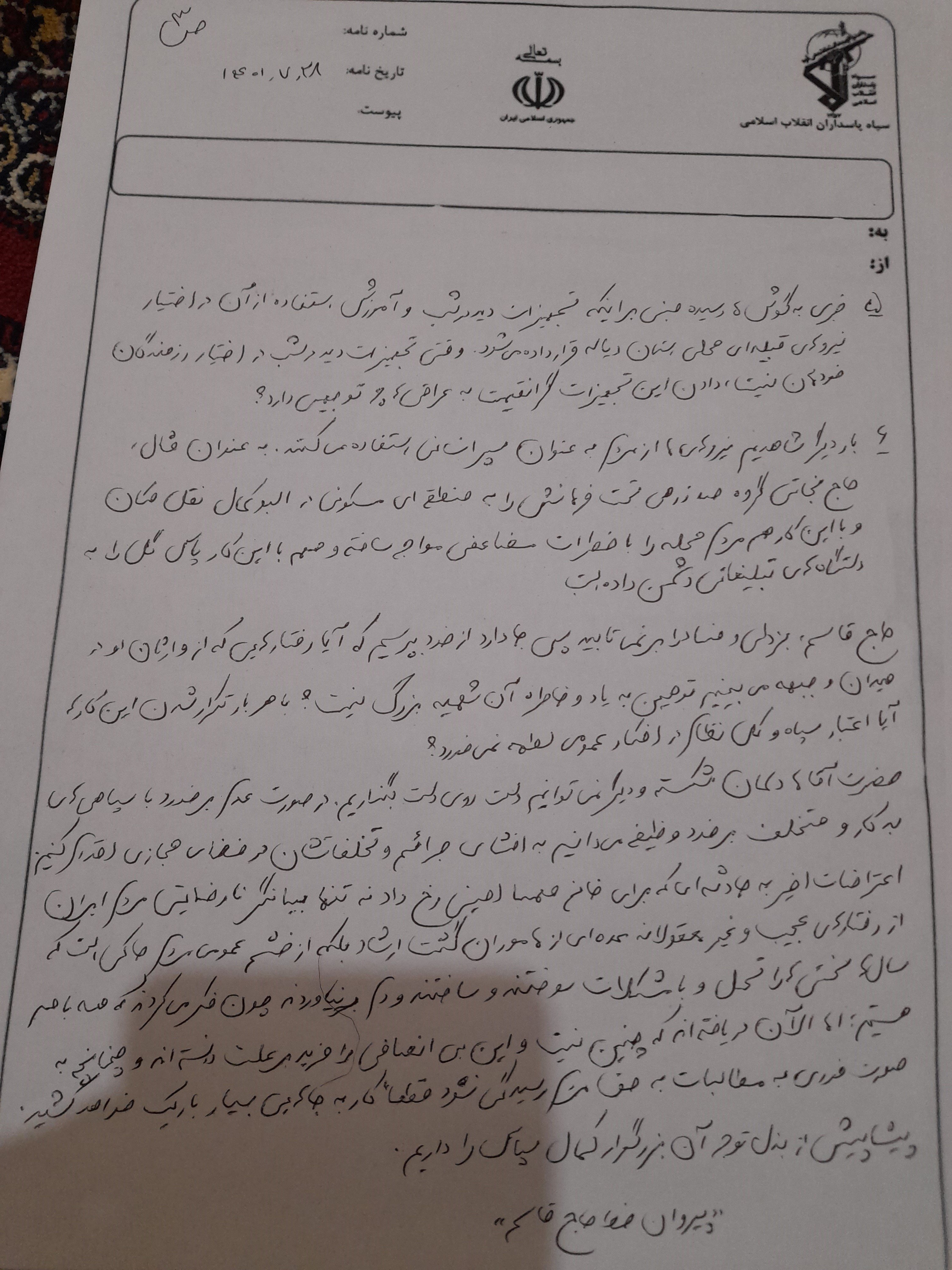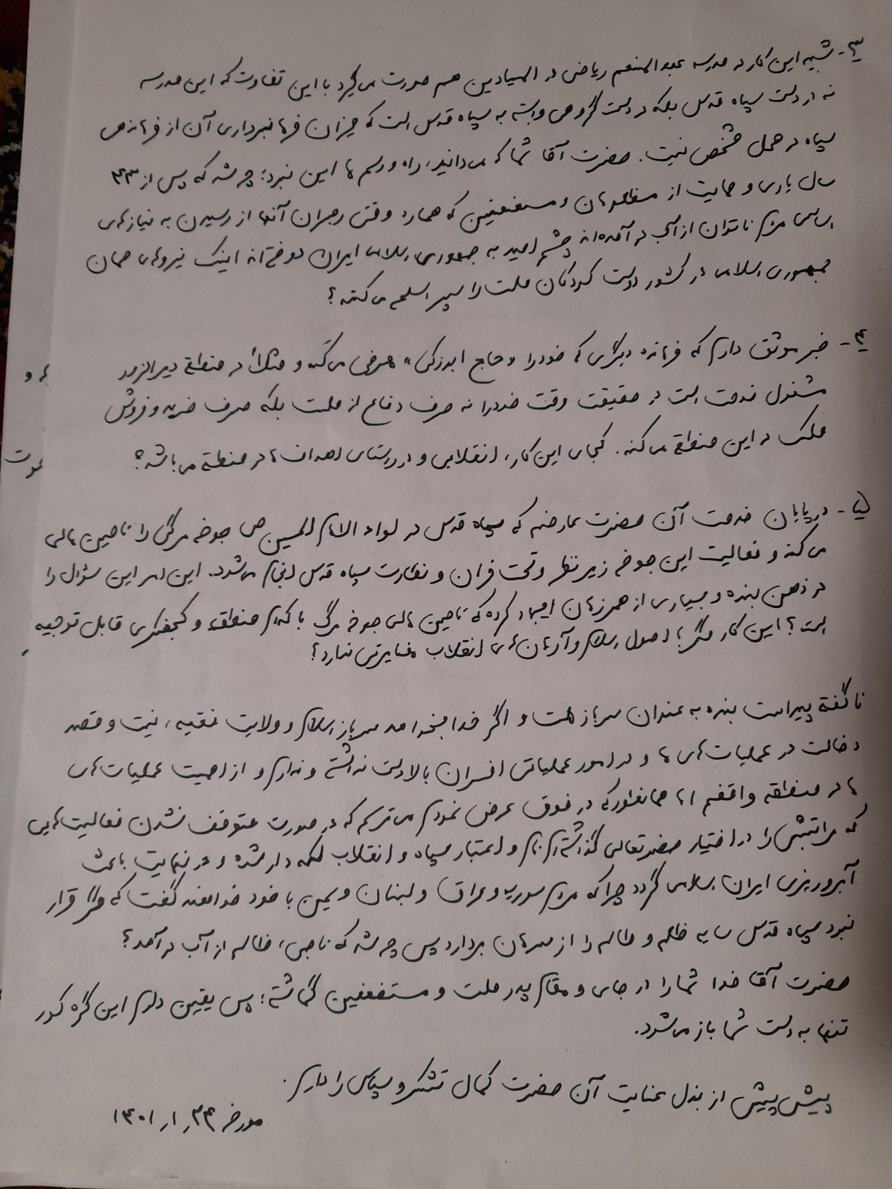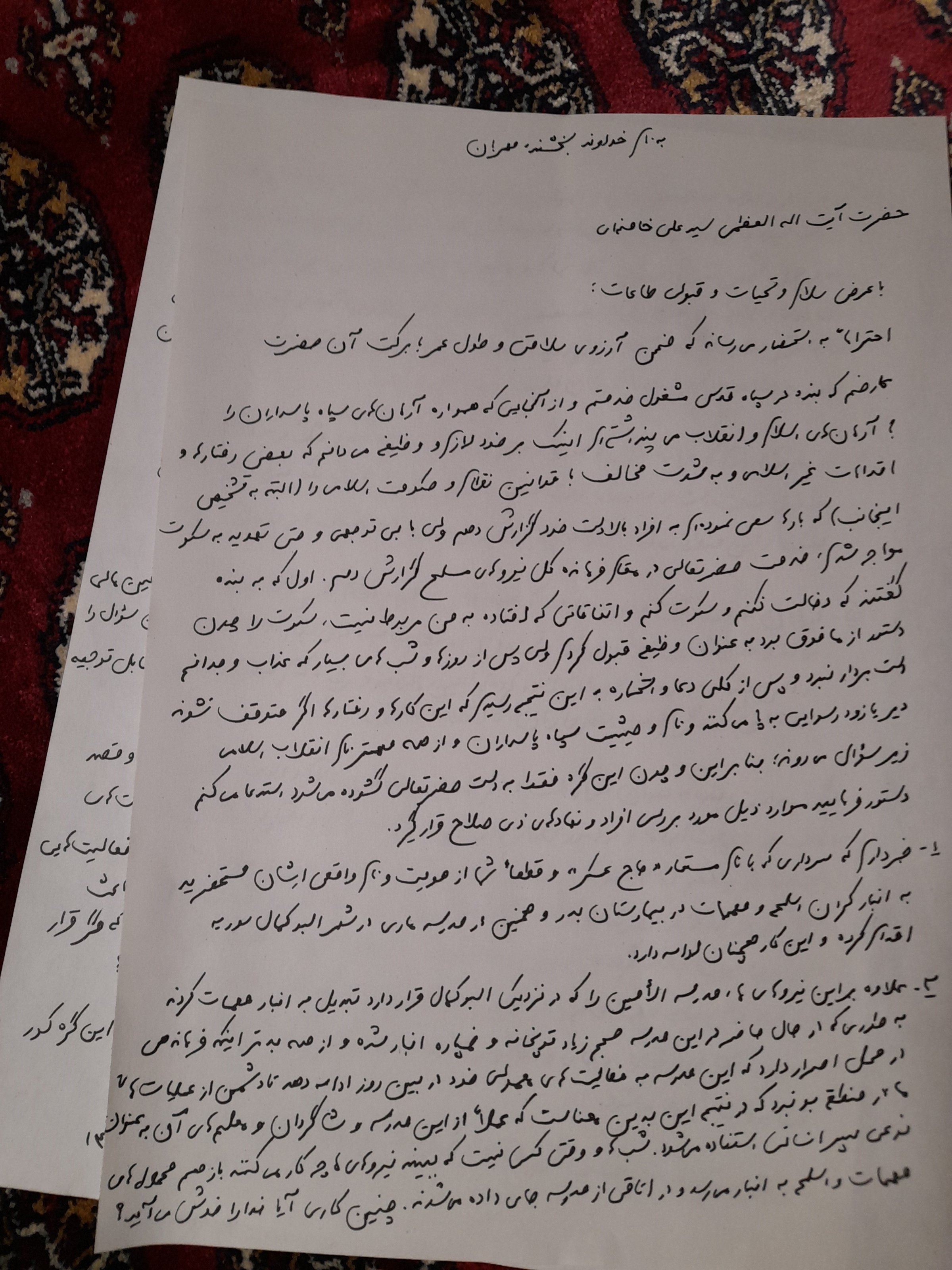 نامه سوم به حضرت آیتالله خامنهای مورخ ۲۸/۷/۱۴۰۱