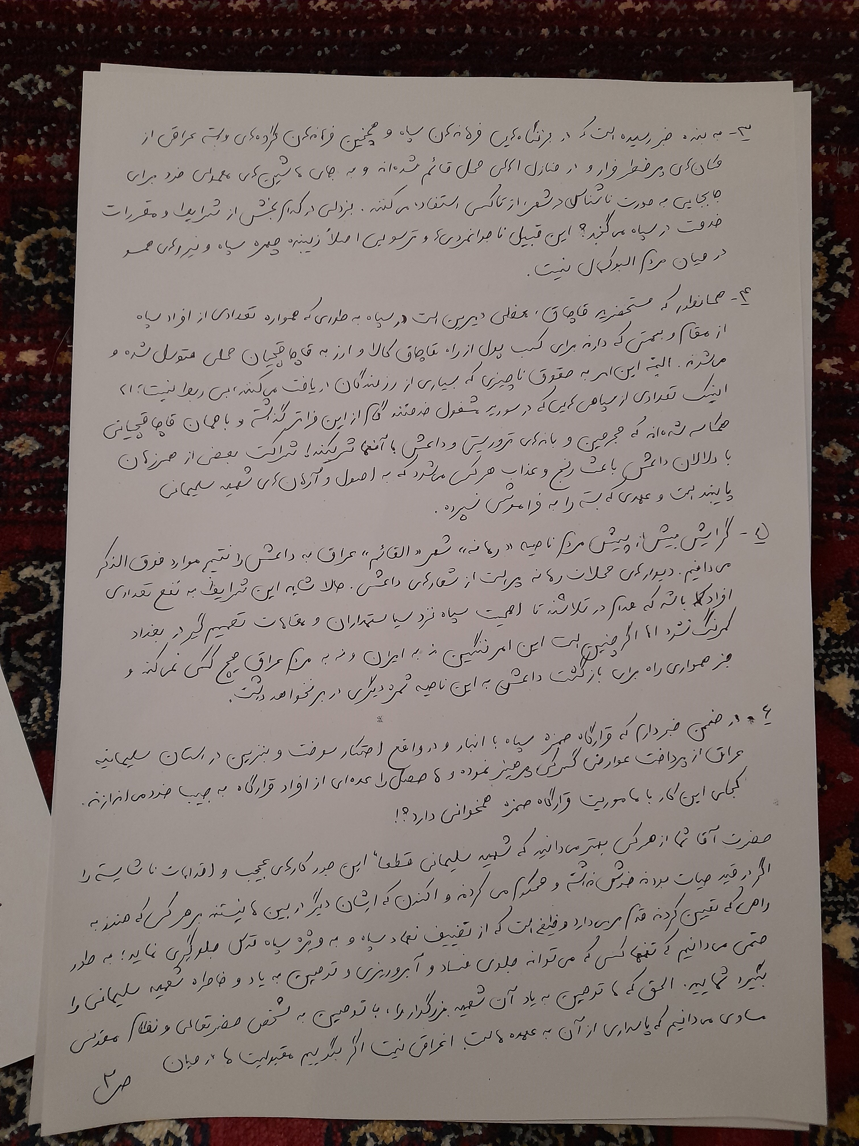 سلام عرض میکنیم. تاکنون هنوز منتظر جوابی به نامههای اول و دوم ما هستیم و به همین خاطر نامه زیر را به حضرت آیتالله خامنهای فرستادیم.